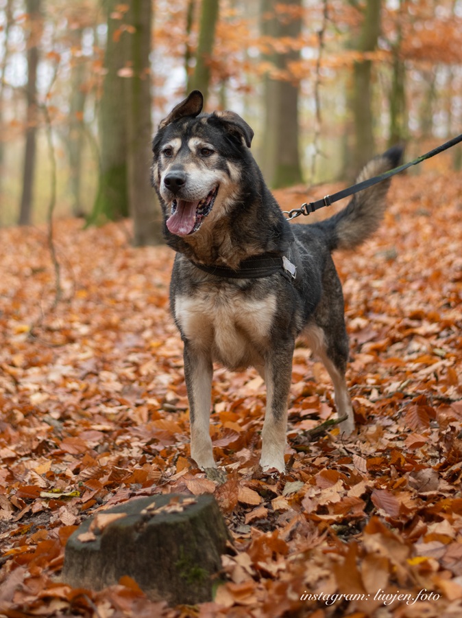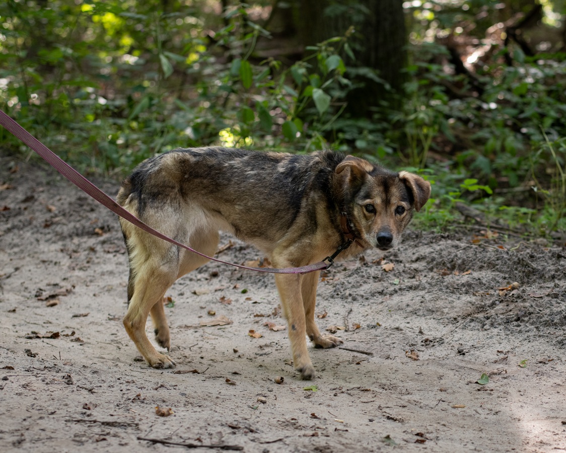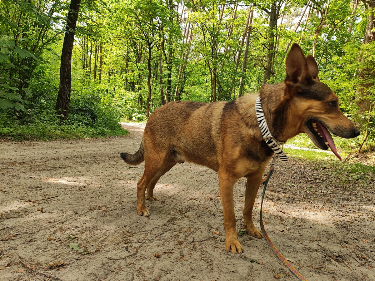 Znaleziona: Złotniku Kujawskie. Została odpchlona, odrobaczona, zaszczepiona i zaczipowana. Gwiazdka to starsza sunia, lubiąca spokój i swoje ścieżki. Dla ludzi jest łagodna, ale nie zbyt wylewna z uczuciami. Z innymi psami dogaduje się dobrze, jest neutralna. Na smyczy niestety radzi sobie kiepsko, woli biegać bez niej. -